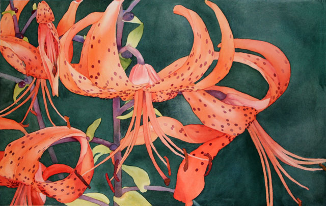 Description: While in Nova Scotia we came across these beautiful Tiger Lilies bobbing in the wind and I knew I had to paint them.